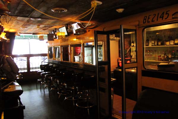 Trusty’s second floor is Open! Lunch box lights, thermos chandeliers, satellite TV’s, and our Trusty’s Full-Service Bus Bar. Grownup kids only! 1st Stop--our 30+ seat open-air patio. Grab a cold one, something fresh from the grill, sit back and relax!